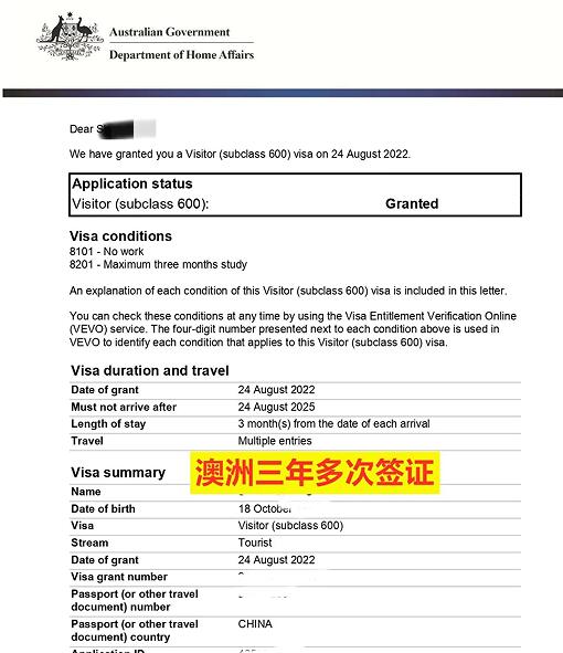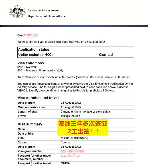 澳大利亞三年簽證,23號(hào)提交 25號(hào)出簽,2個(gè)工作日順利到手!這個(gè)速度太給力了!