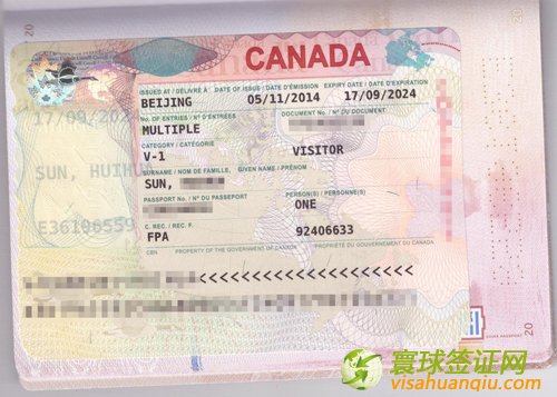 簽證類別:加拿大十年多次旅游簽證通過
