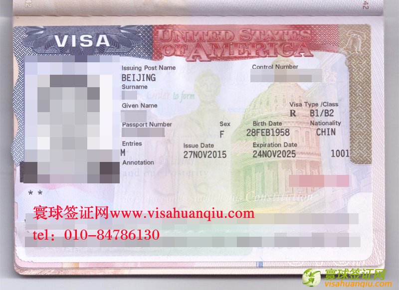 簽證類別:美國旅游簽證