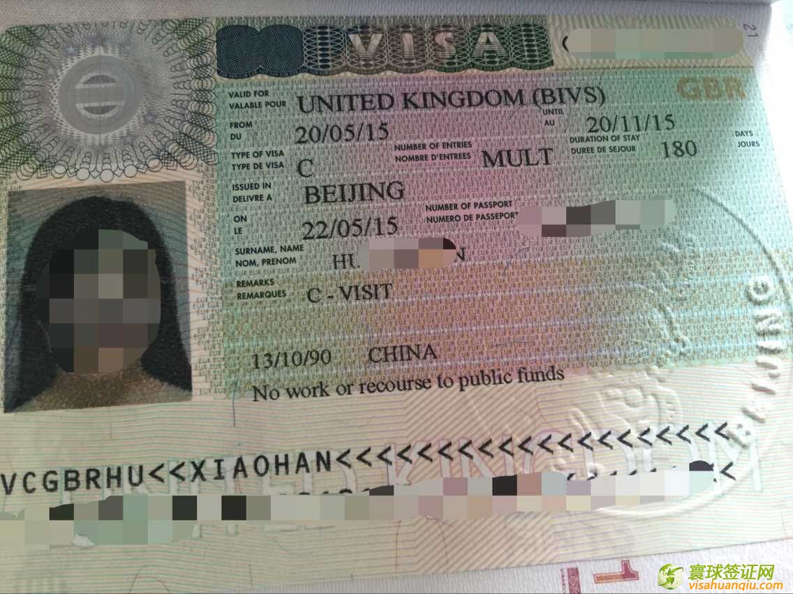 河南省,胡小姐的英國畢業(yè)典禮簽證頁: