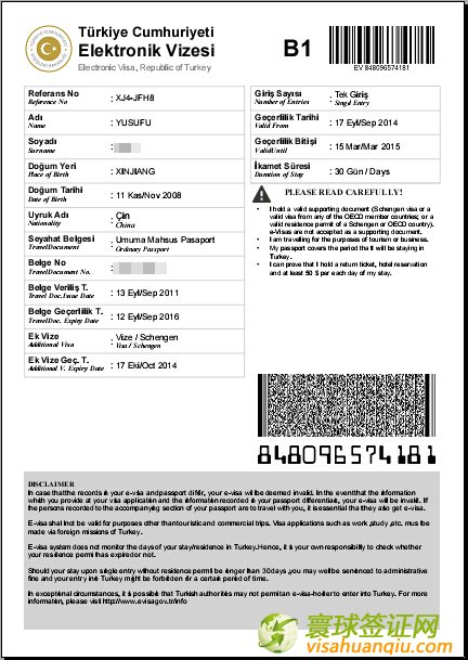 新疆,玉素浦母女土耳其旅游簽證半年多次簽證頁: