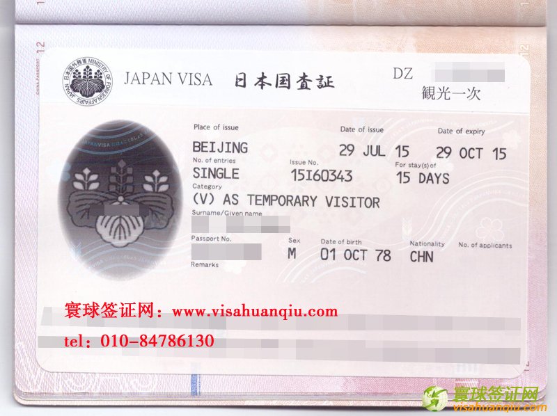 簽證類別:日本旅游簽證