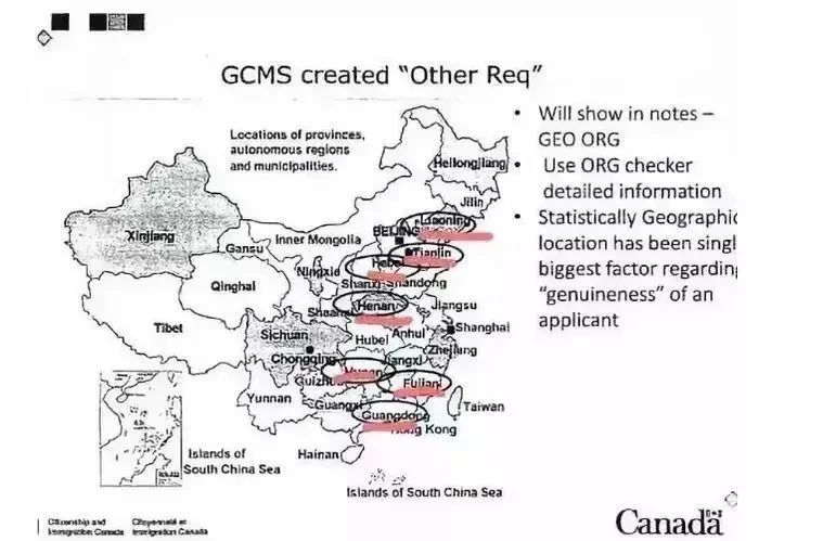 據(jù)傳,加拿大對中國部分省份和特定姓氏的申請者存在“暗箱操作”,加拿大在簽證審批中對來自中國六大省份的申請者特別“關(guān)照”,直接被標(biāo)注為高風(fēng)險(xiǎn)地區(qū),包括河南、福建、湖南、河北、安徽和江西。