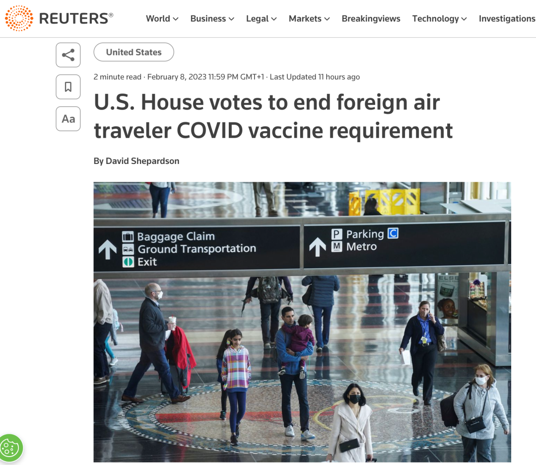 格思里還稱,取消這一規(guī)定“將使美國與北美其他國家對入境人員的新冠疫苗政策保持一致,并承認新冠疫情已經(jīng)是一種地方性流行,而不再是大流行。”