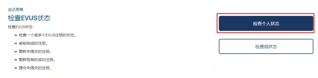 頁(yè)面下滑到EVUS檢查模塊,一般我們選擇“檢查個(gè)人狀態(tài)”