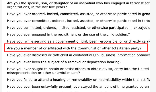 其實(shí)這次的規(guī)定非常模糊:比如說“affiliated”這個(gè)詞,少先隊(duì)員、共青團(tuán)員這兩項(xiàng)是否也屬于中國共產(chǎn)黨的“附屬”呢?