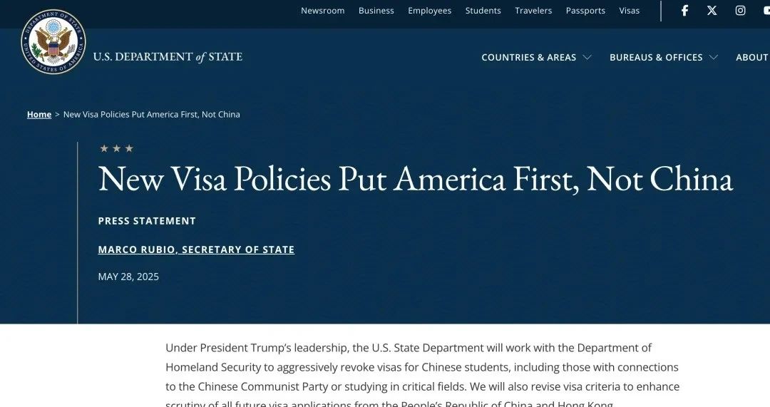 美東時間5月28日下午6時許,美國國務(wù)院發(fā)布一份聲明稱,美國國務(wù)院將和美國國土安全部共同合作,開始撤銷中國留學(xué)生的簽證,包括在關(guān)鍵領(lǐng)域?qū)W習(xí)的學(xué)生。