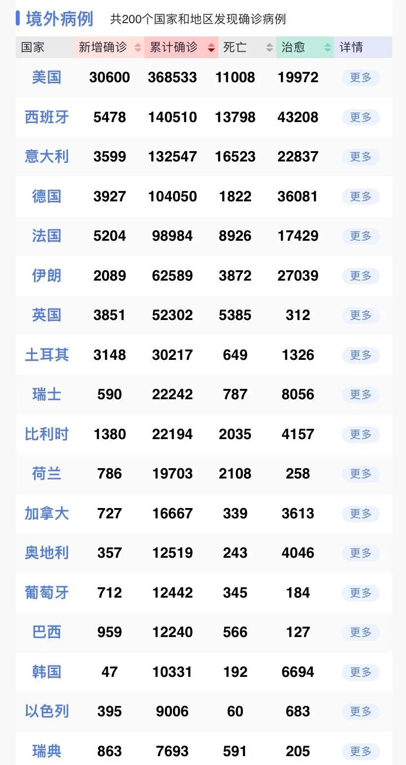 據(jù)美國(guó)約翰斯·霍普金斯大學(xué)新冠肺炎疫情最新統(tǒng)計(jì)數(shù)據(jù)顯示,截至北京時(shí)間4月7日晚23時(shí)20分,美國(guó)累計(jì)確診病例368533例,累計(jì)死亡11008例。美國(guó)是全球累計(jì)確診病例數(shù)最多的國(guó)家,死亡病例數(shù)第三多國(guó)家。