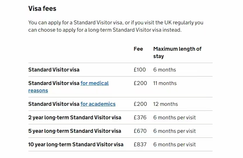 半年簽證申請(qǐng)費(fèi)用是 100英鎊,2年申請(qǐng)費(fèi)用是376英鎊,5年申請(qǐng)費(fèi)用670英鎊,10年申請(qǐng)費(fèi)用837英鎊,簽證費(fèi)隨匯率變化而變化