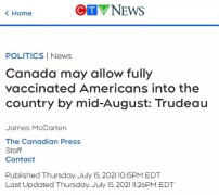 加拿大9月起將開放旅游入境,打了國產(chǎn)疫苗也可以入境