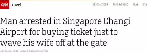 據(jù)各媒體報道,新加坡一名27歲男子為了進(jìn)入機場中轉(zhuǎn)區(qū)與妻子告別,購買飛機票進(jìn)入過境區(qū)。但他因為沒有使用機票,而被新加坡警方拘留,并將面臨最高2年的刑期或2萬新加坡元((約合103142人民幣))的罰款,或兩刑并有。
