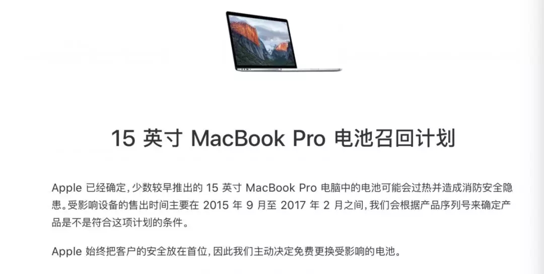 兩個月前,蘋果公司已宣布召回部分15英寸的MacBook Pro: