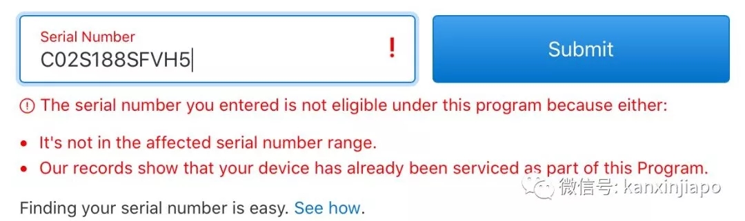 大家可以通過蘋果官網(wǎng)查詢電腦序列,確定自己的電腦是否在召回計劃之內(nèi)。也不是所有在那一段時間購入的電腦有問題哦~