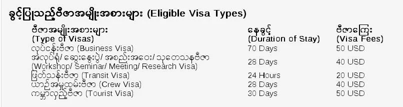 緬甸落地簽最新要求: