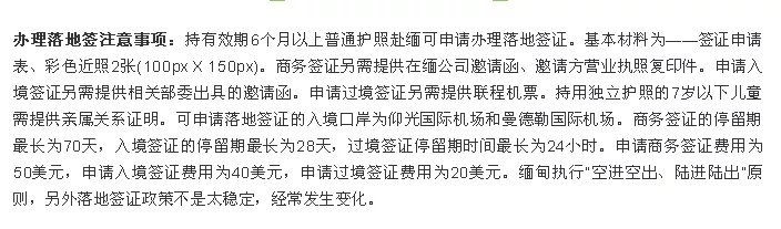 關(guān)于緬甸的“落地簽”政策