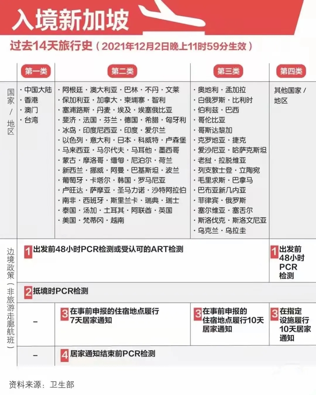 所有第1類別國(guó)家/地區(qū)的旅客,已經(jīng)完成疫苗接種并通過疫苗接種者通道(VTL)入境新加坡的游客,可以繼續(xù)享受免隔離政策。他們也將不必再進(jìn)行入境的PCR檢測(cè),只需在入境的24小時(shí)內(nèi)去全國(guó)的任何一家檢測(cè)中心,并取得ART證明即可。