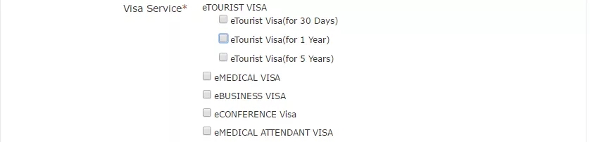 從今年上半年開始印度電子簽給的都是一年多次類型, 現(xiàn)在打開電子簽證網(wǎng)站上類型可以選擇:30天,一年、五年。商務(wù)類型還是一年的。